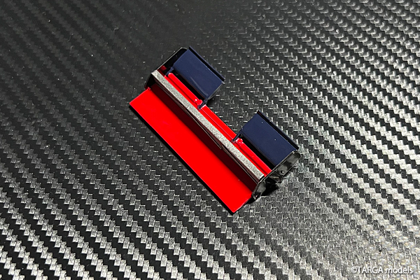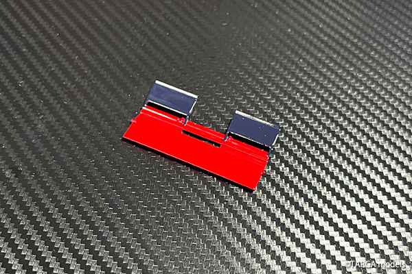 フロントウィングです。フロントウィングと言ってもこのマシンの特長で上下2枚の構成になっています。なのでこちらは下部の箇所。デカールは使わず塗装で塗り分けました。
